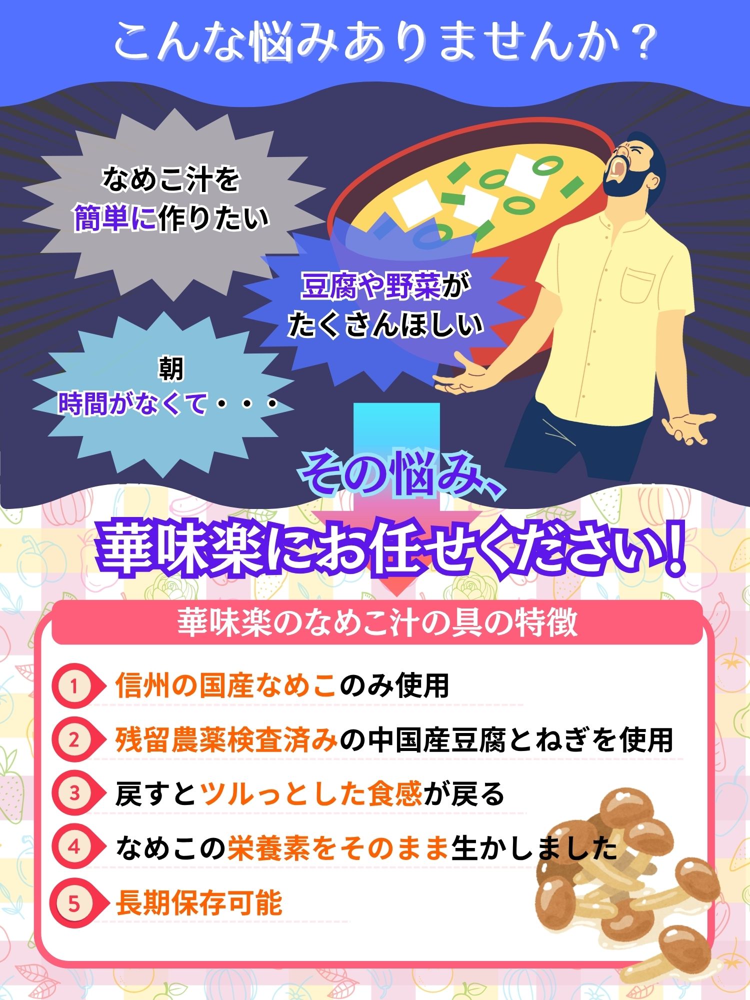 華味楽 かみらく なめこ汁の具 60g 国産なめこ 中国産乾燥野菜 豆腐 ねぎ 味噌汁 長期保存 エアーズドライ 保存食 業務用 大容量 ドライ野菜
