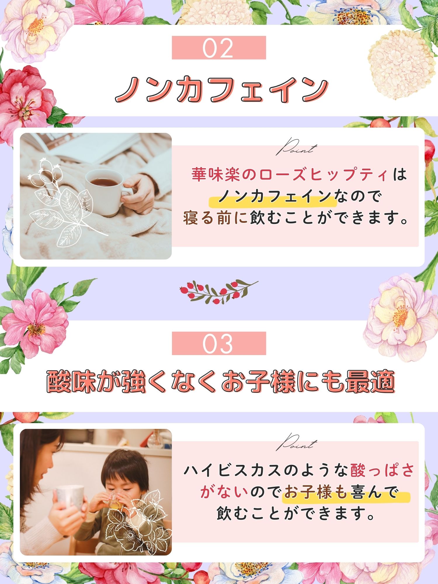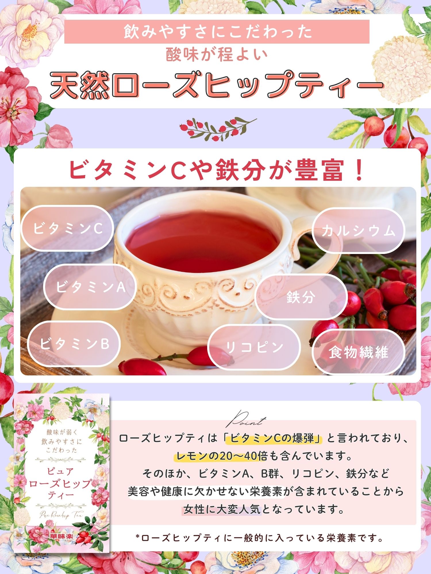 • ✅【 ビタミンCや鉄分が豊富 】ローズヒップはビタミンCの爆弾と言われるようにレモンの20~40倍含んでいるお茶です。そのほかビタミンA、B群、リコピン、鉄分などが含まれています。