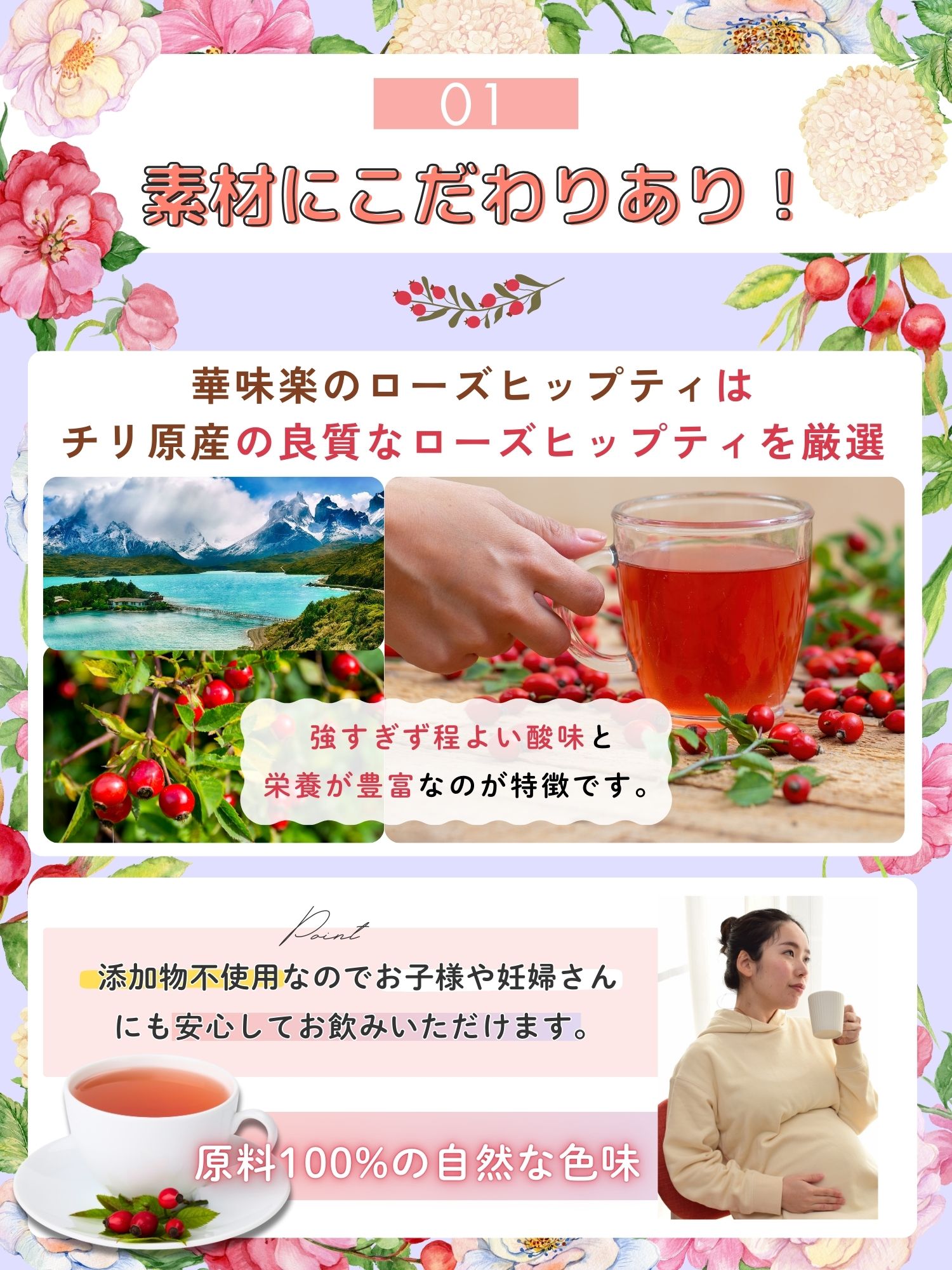 華味楽 かみらく ローズヒップ茶 2gx30包 添加物 無添加 無香料 無着色 無漂白ティーバッグ ティーバッグ 30包入り チリ産 大容量 500ml 1000ml ノンカフェイン